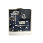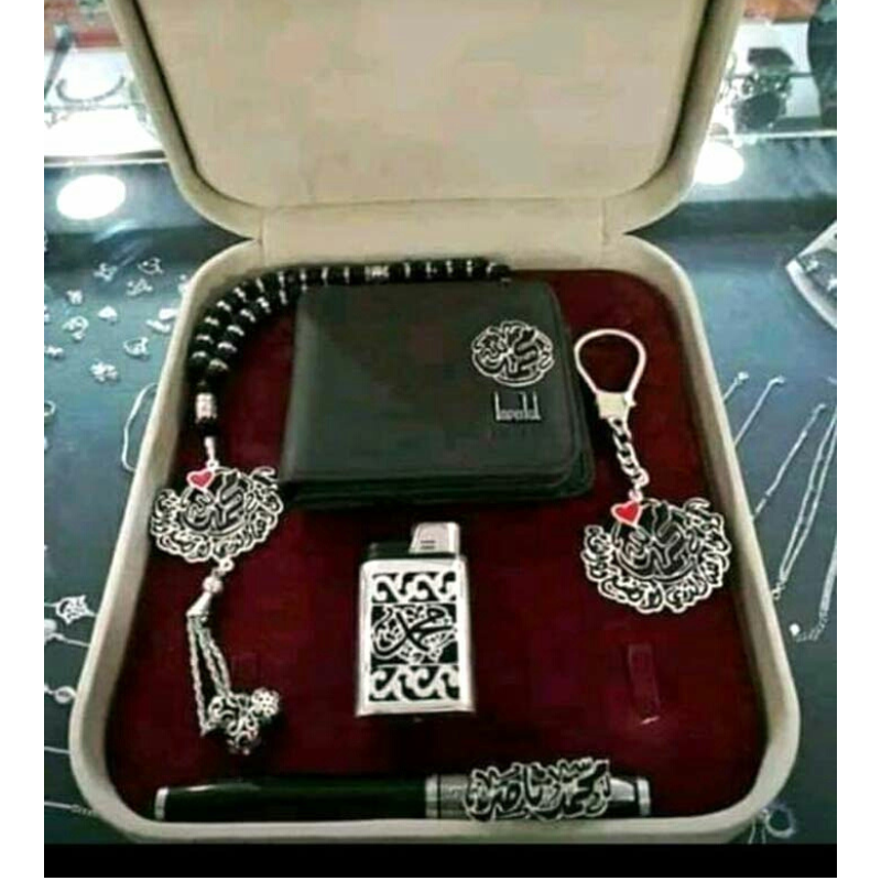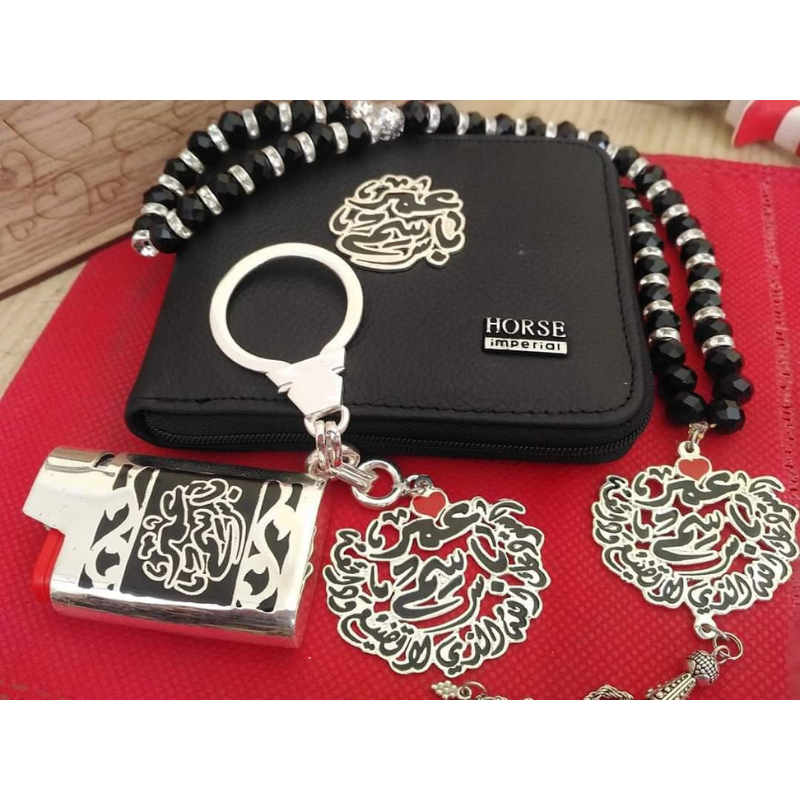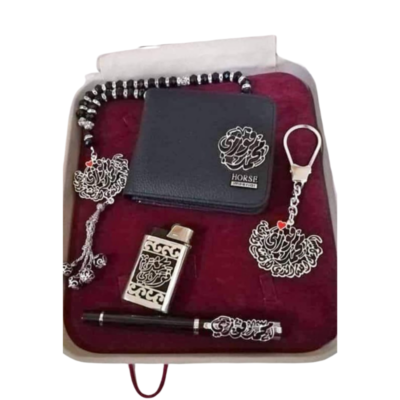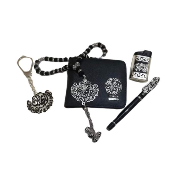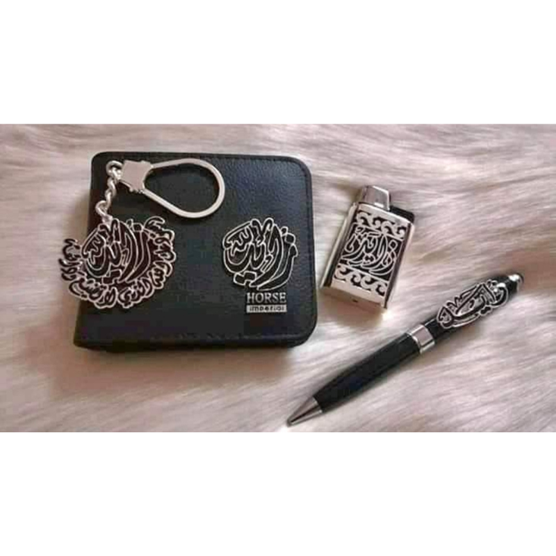 | المكونات | محفظة جلد طبيعي، سبحة/دلاية عربية، ميدالية مفاتيح، قلم، ولاعة DJEEP |